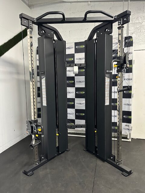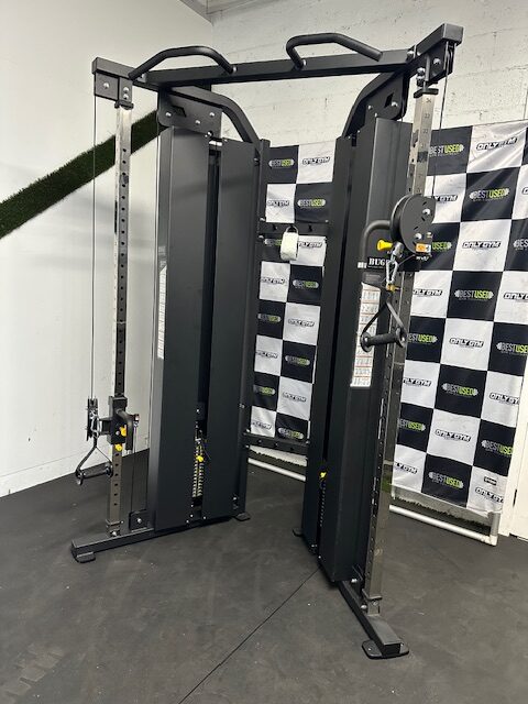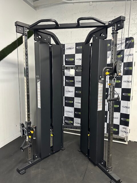 The BUGE PC0960H2 is a commercial-grade cable crossover machine featuring independent weight stacks and adjustable pulleys to facilitate a wide range of strength-training exercises. A key feature is the inclusion of a lat pulldown and low row station, allowing for a comprehensive full-body workout.
