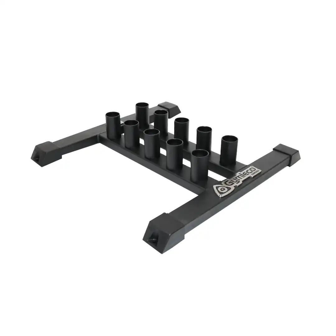 Gymleco’s sturdy and good looking barbell rack which has room for 10 barbells standing vertically. Fantastic design combined with high quality materials which makes it safe and secure.